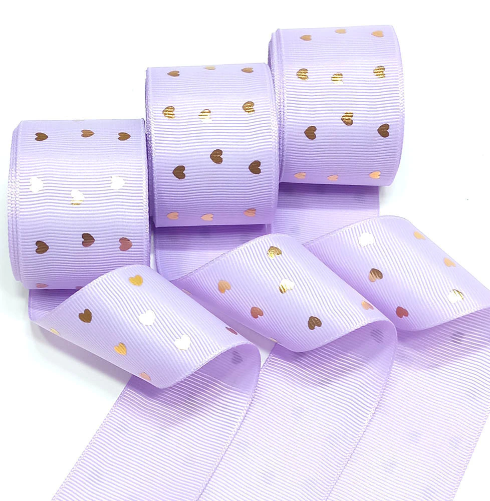 Fita Gorgorão Lilás Coração Dourado para Laços e Artesanato
