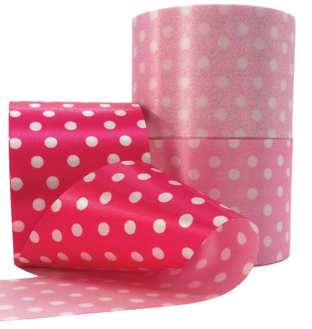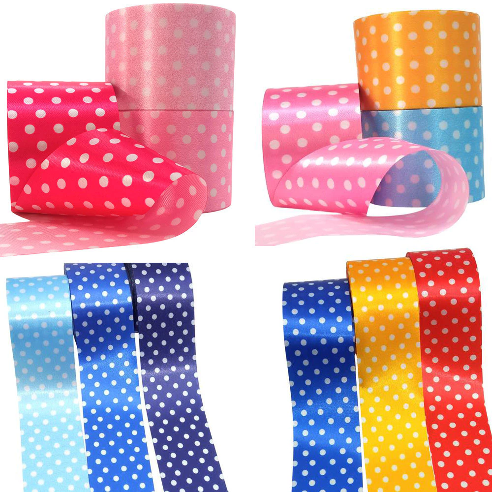 Dê charme e delicadeza às suas criações com este kit de fitas de cetim estampadas em poá (bolinhas)!