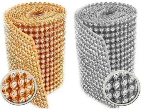 Manta strass prata e dourada com 10x45cm cada rolo. 20x45 PAR!